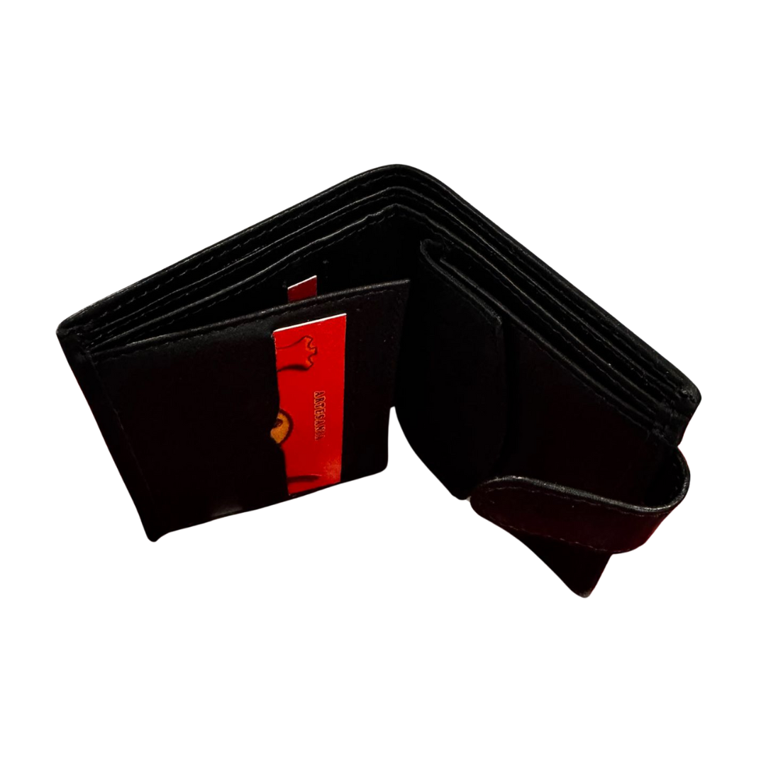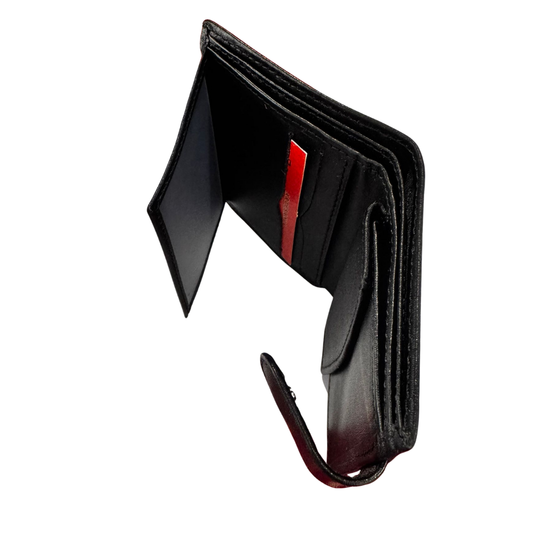 Cartera billetera piel Ubrique negra con Aspa de San Andrés y bandera España